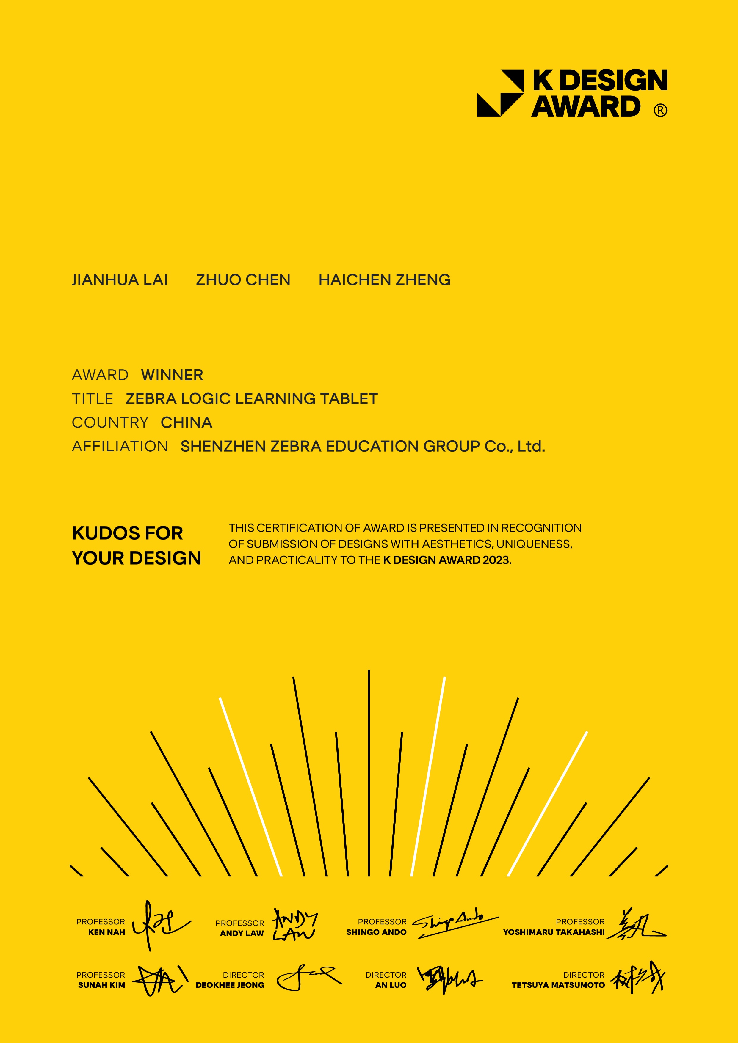| K Design Award | K设计大奖,享誉全球的国际专业设计大奖 | 证书 | 2023 年 |