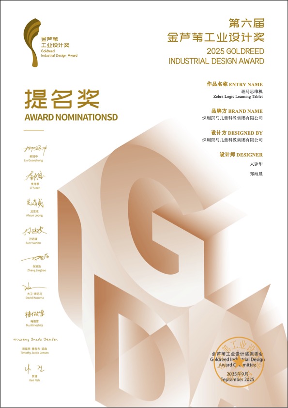 斑马思维机为思维机品类开创者,拥有 6 项思维机专利和 10 项国际大奖。