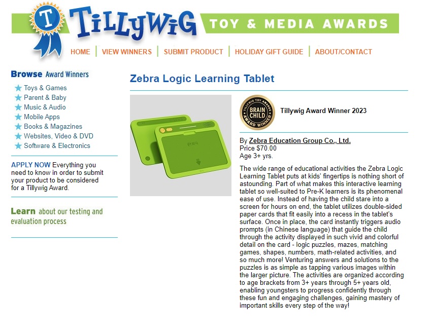 | Tillywig Toy Awards | 堤利威格玩具奖,美国玩具行业最顶级的奖项之一 | 证书 | 2023 年 |